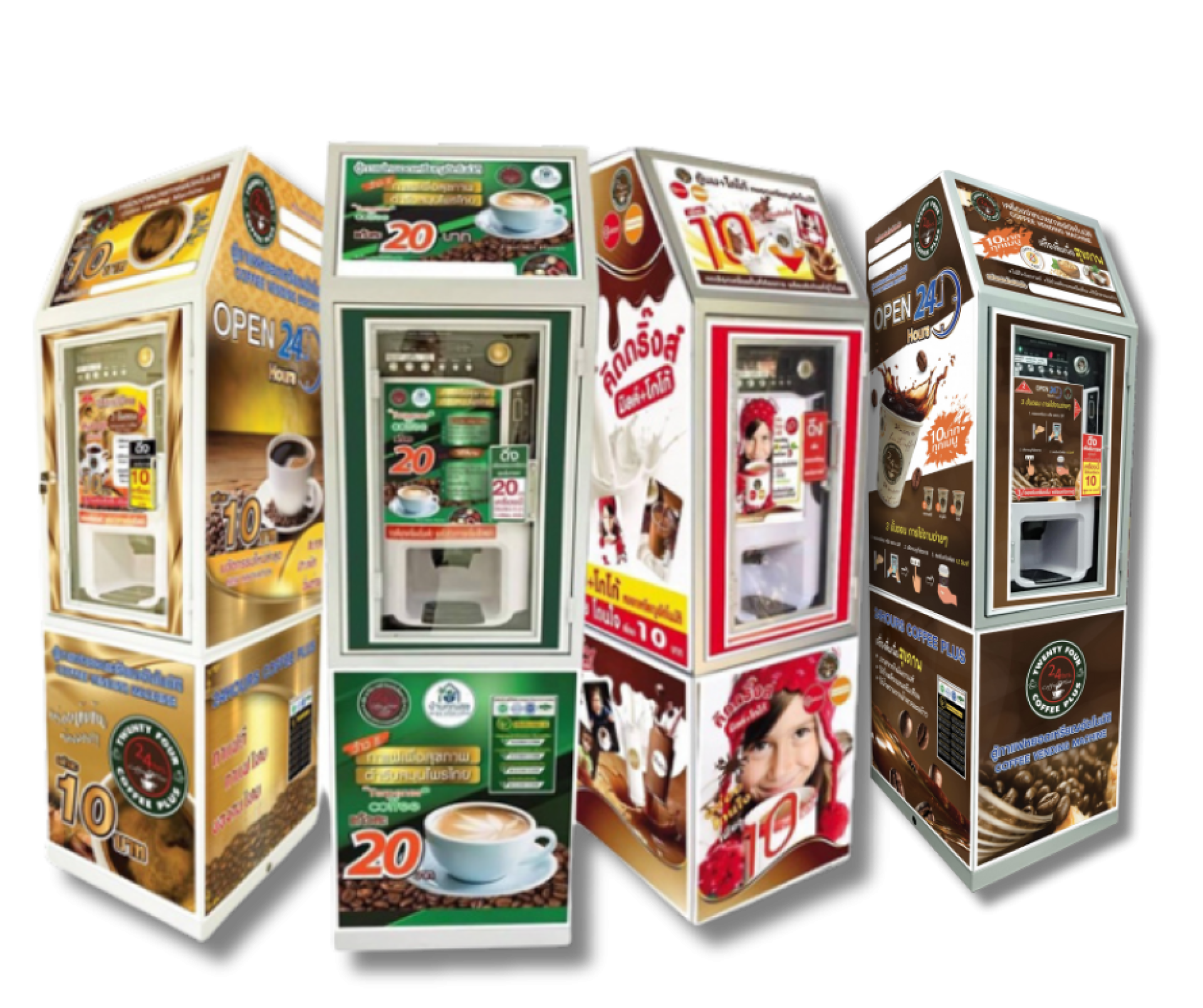 - ตู้กาแฟหยอดเหรียญ ตู้กาแฟอัตโนมัติที่สามารถทำกาแฟสดได้ทันที กำไรสูง และได้รับความนิยมจากพนักงานออฟฟิศ โรงงาน และหน้าร้านค้าต่างๆ